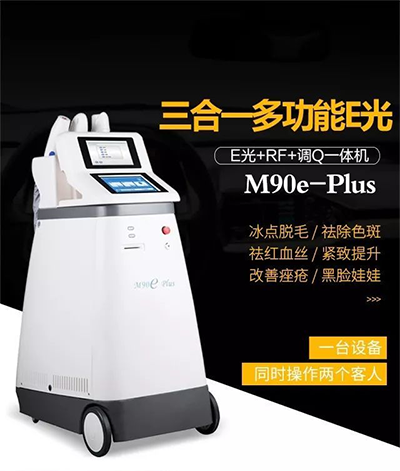 多功能一体机美容仪M90e plus配有F+E、RW-V和激光E型手具,是双屏双控双系统,一台仪器可以同时操作两个人,提高工作效率,减少客户等待的时间。其中F+E配有5种滤波片,滤波片随意切换,可进行祛痘、嫩肤、祛除色斑、皮肤血管性问题操作、脱毛等项目。